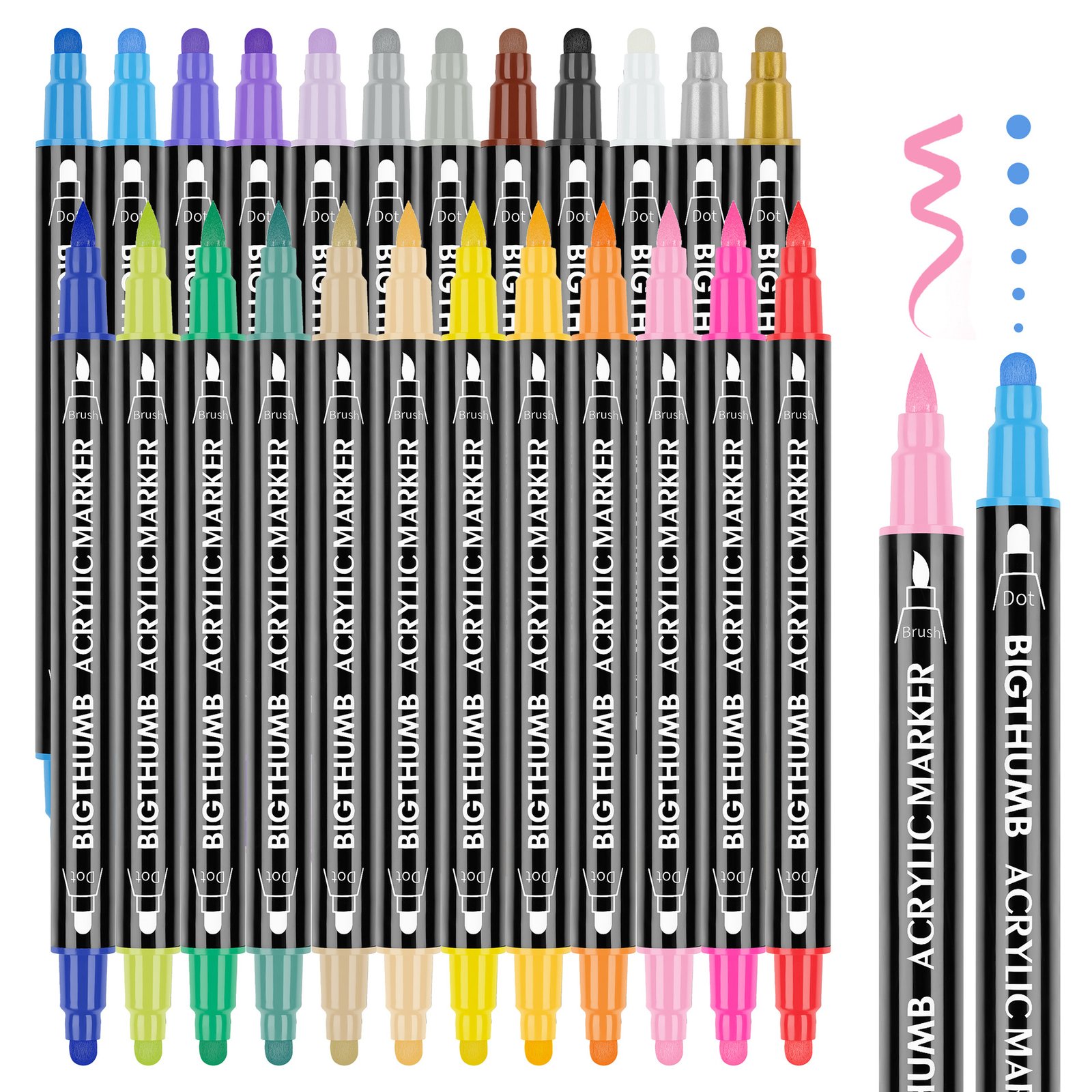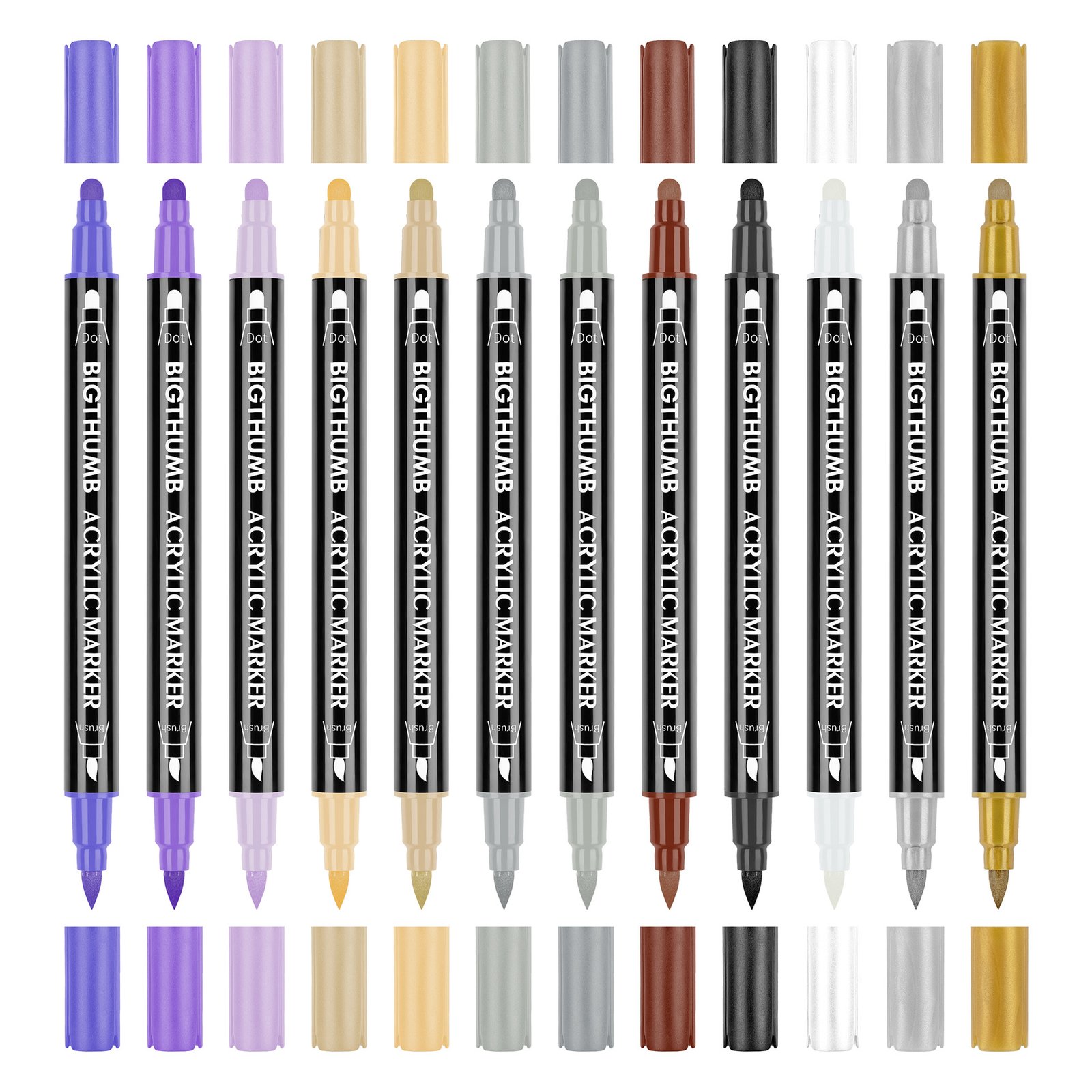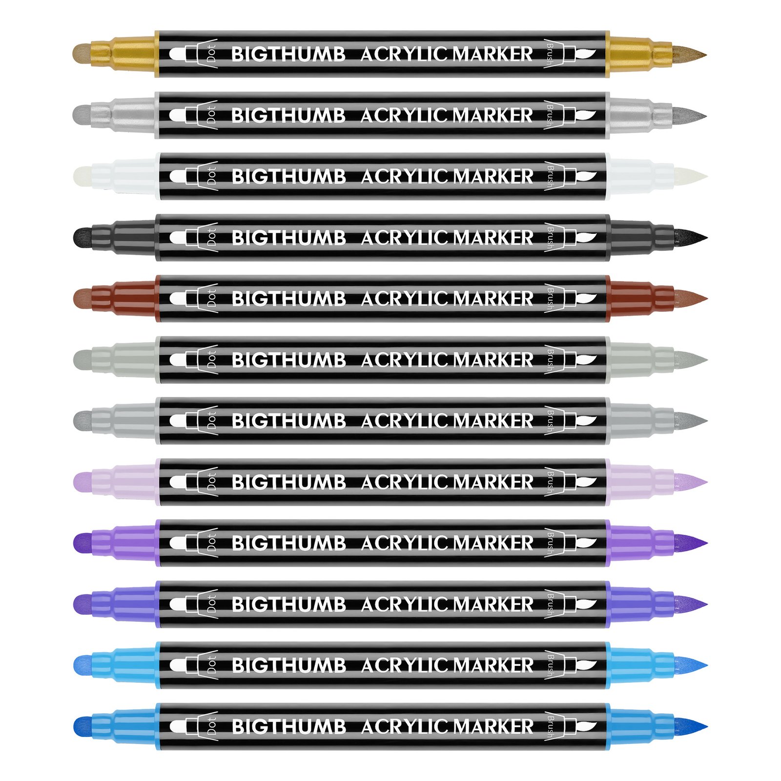 Designed for artists and DIY enthusiasts, the Acrylic Marker Pen MP-002 offers unmatched flexibility and precision with its unique double-headed design. Featuring a small dot tip on one end and a soft-bristled brush on the other, this marker adapts seamlessly to your artistic needs, from intricate dot work to broad strokes.